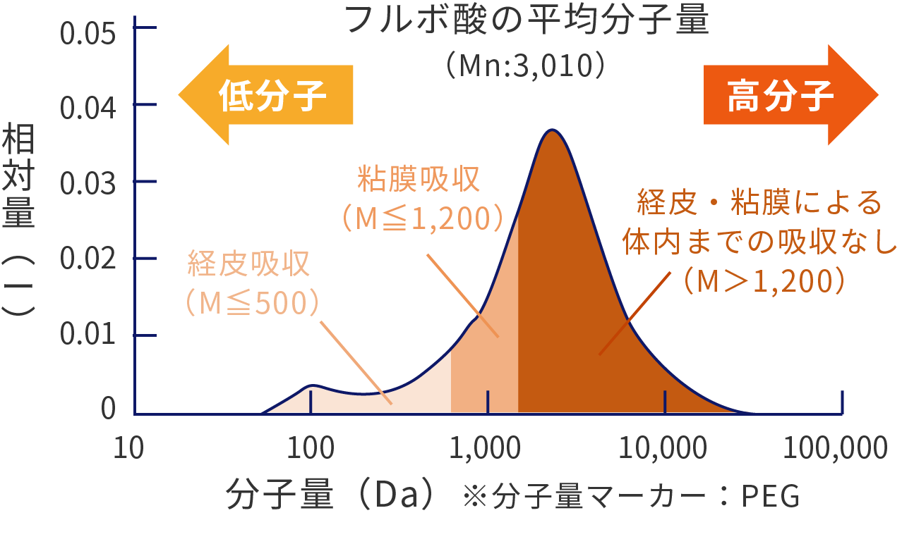 フルボ酸エキス※1中のフルボ酸は一つの分子内に複数の機能を発揮する分子構造を持っている天然の高分子ポリフェノールカルボン酸であり、水に溶けると酸性を示します。さらに、自身が酸化されることによって酸化剤を除去し、他の物質が酸化剤から酸化されることを防ぐ抗酸化作用があります。