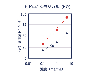 【試験結果】フムスエキスに含まれるフルボ酸による活性酸素消去能(ラジカル消去能)